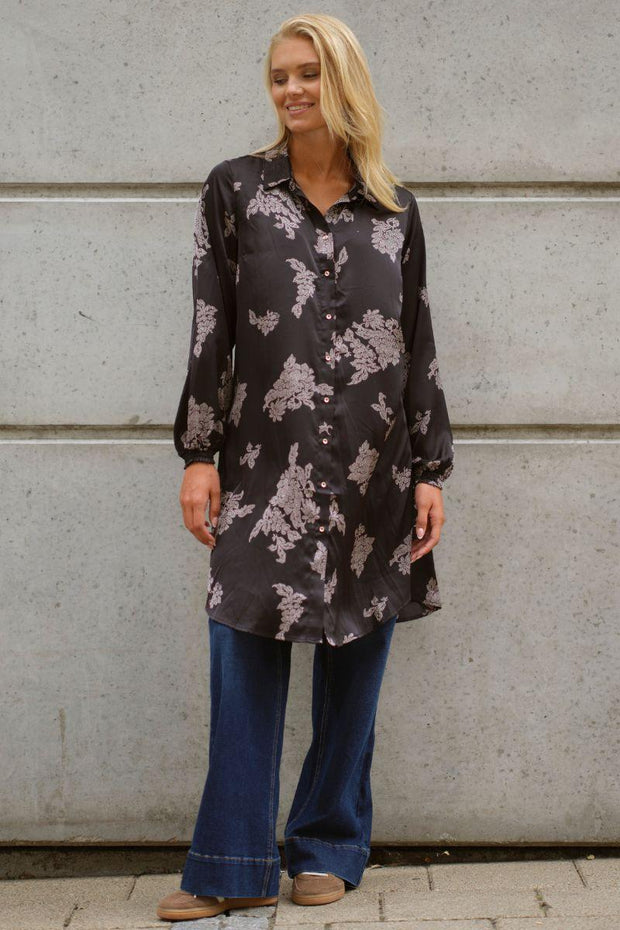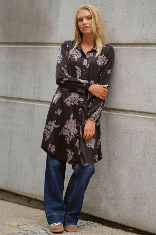 Silje skjortekjole er en super fin gennemknappet kjole med klassisk skjortekrave, lommer i siderne og lange ærmer der afsluttes med en smal smockkant . Modellen er 174 cm høj og bærer en størrelse S.