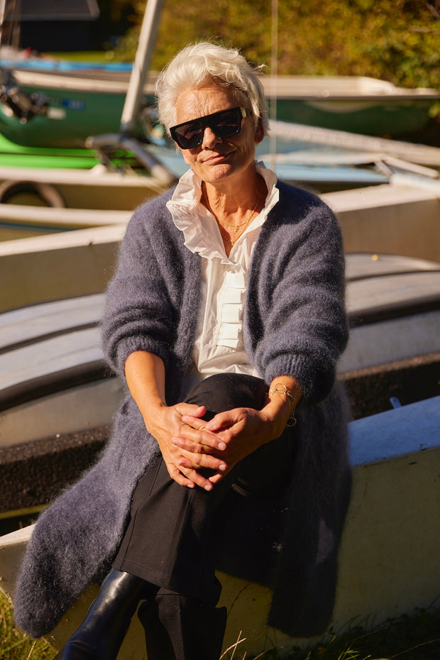 Long open cardigan in fluffy mohair 82121L | Mouse Gray | Strik fra Atelier C