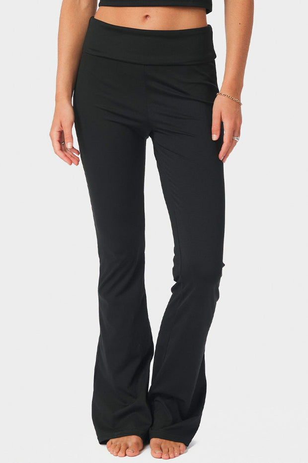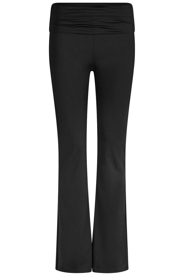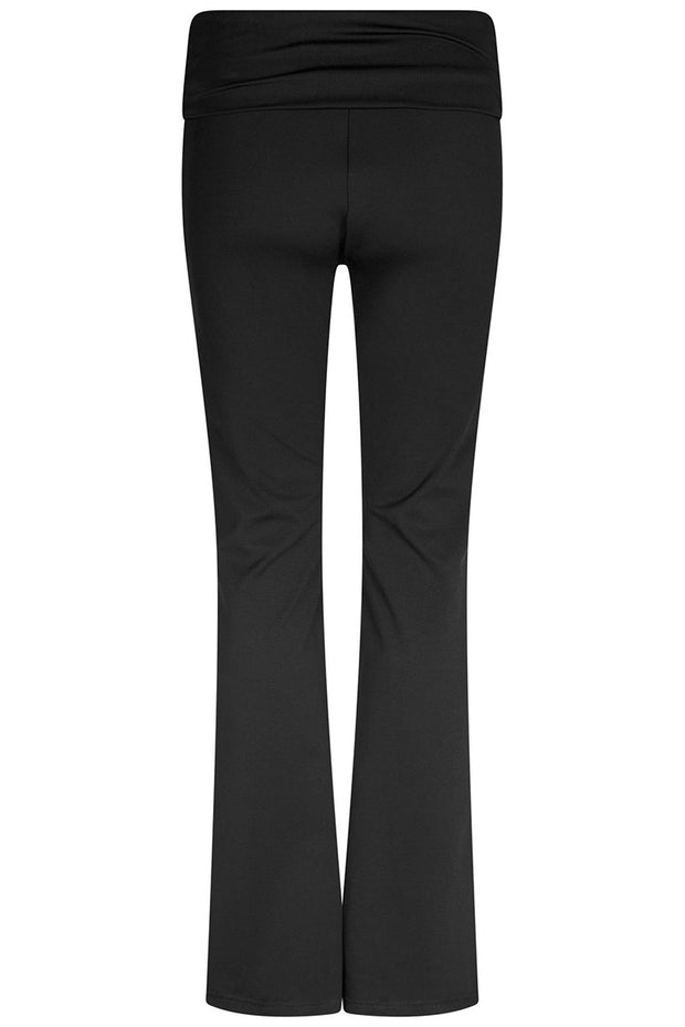 Komfortable bukser med en masse stræk. Buksen har en høj lining som kan foldes ned og en smule flare forneden. Modellen er 176cm og bærer en størrelse 36.