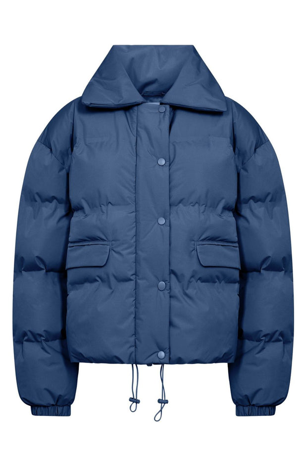Cool kort puffet jakke med krave og lommer. Jakken har lynlås og trykknapper på fronten, så den kan holde kulden ude. Derudover har den justerbare snore i bunden, så der ikke kommer vind op under, samt manchetter ved ærmerne.