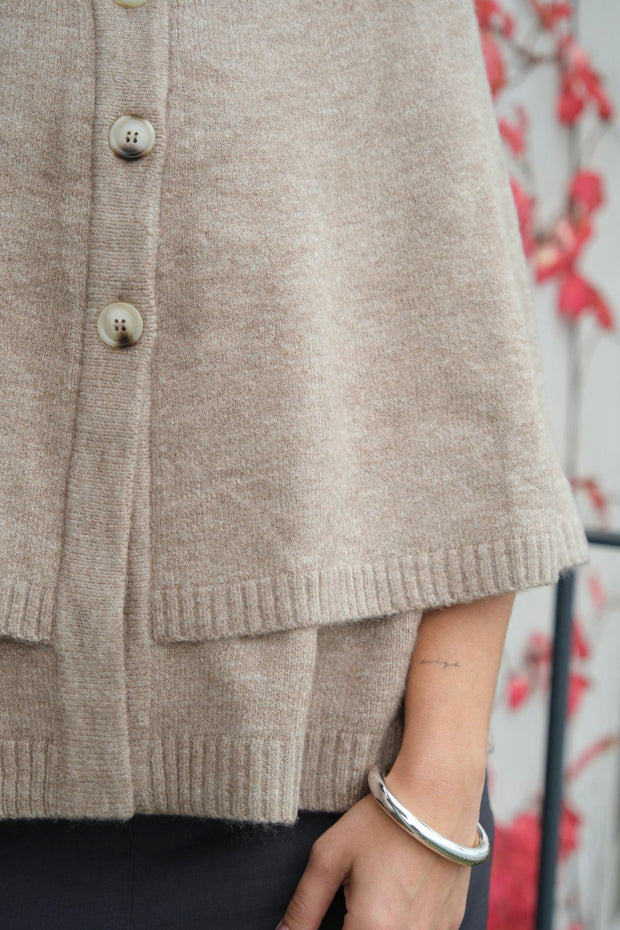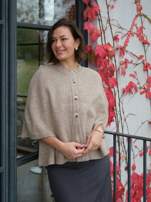 Josei Double Knit Cape | Beige Melange | Strik fra Neo Noir