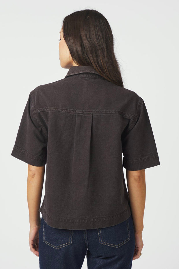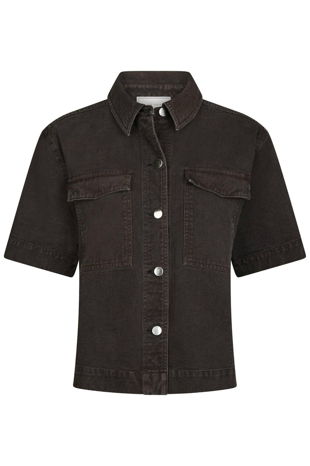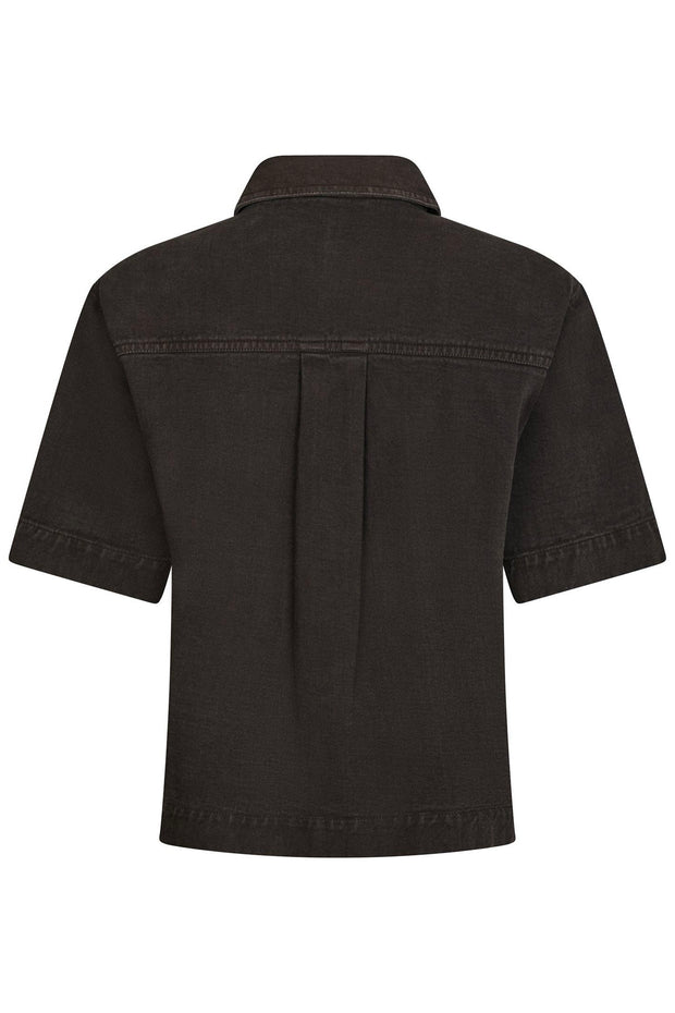 Cool kortærmet kanvas skjorte med krave og brystlommer. Modellen er 176cm og er iført en str. 36.