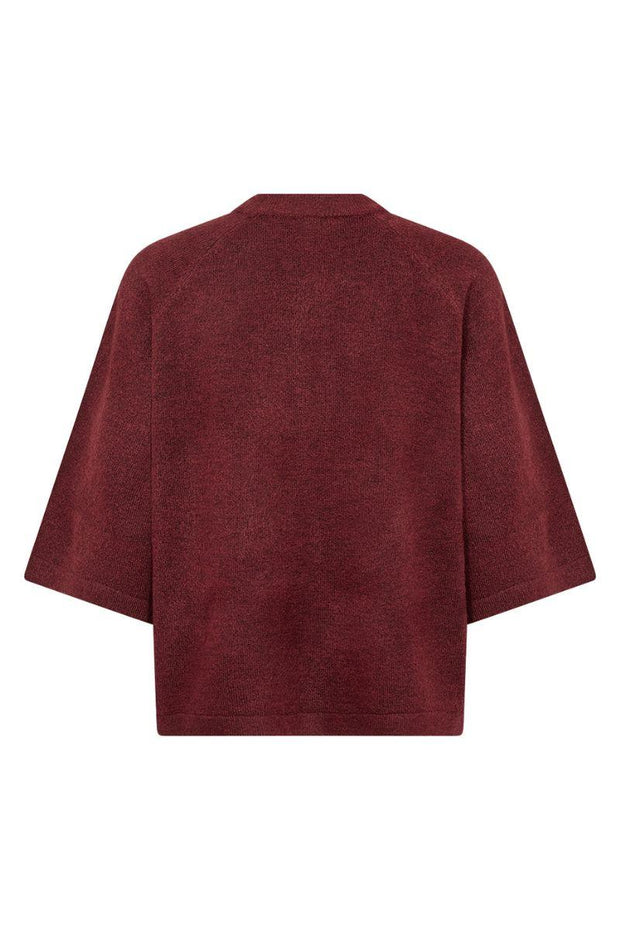Alice Knit er strikket i en blød kvalitet der giver både komfort og let stretch. Den har rund hals, korte ærmer og en struktureret overflade, som tilfører et moderne udtryk.