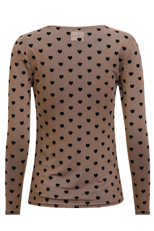 Mesh Ls Tshirt | Sand Black Flock Heart | Bluse fra Liberté
