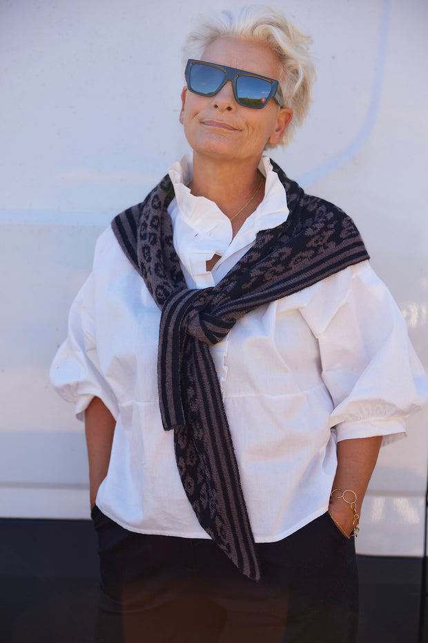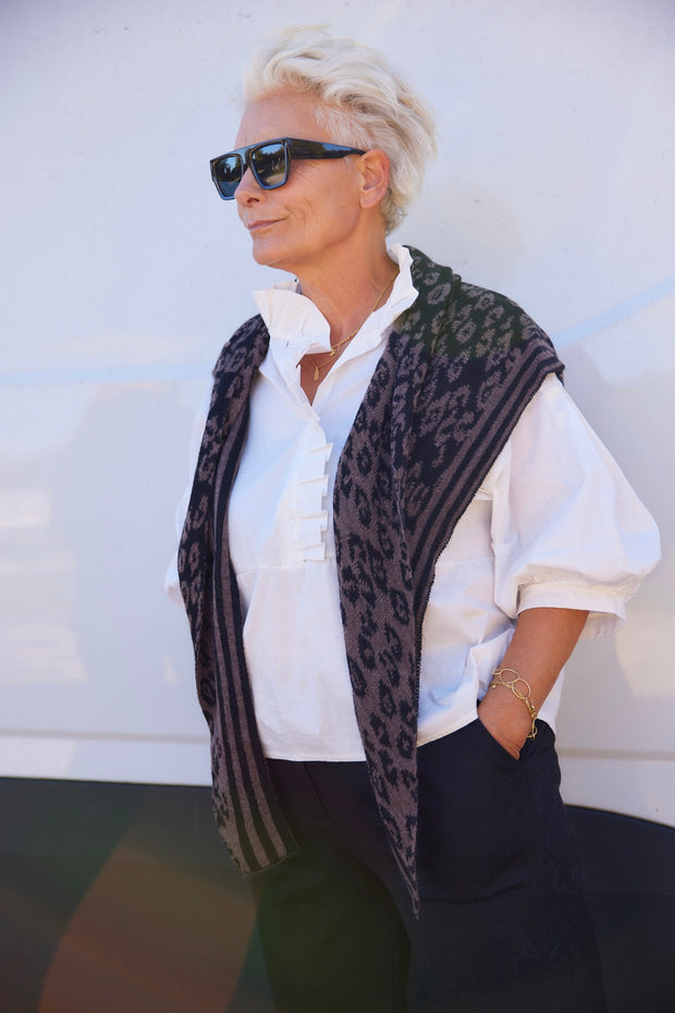 Schöner und weicher dreieckiger Strickschal mit Leopardenmuster von Statebird.