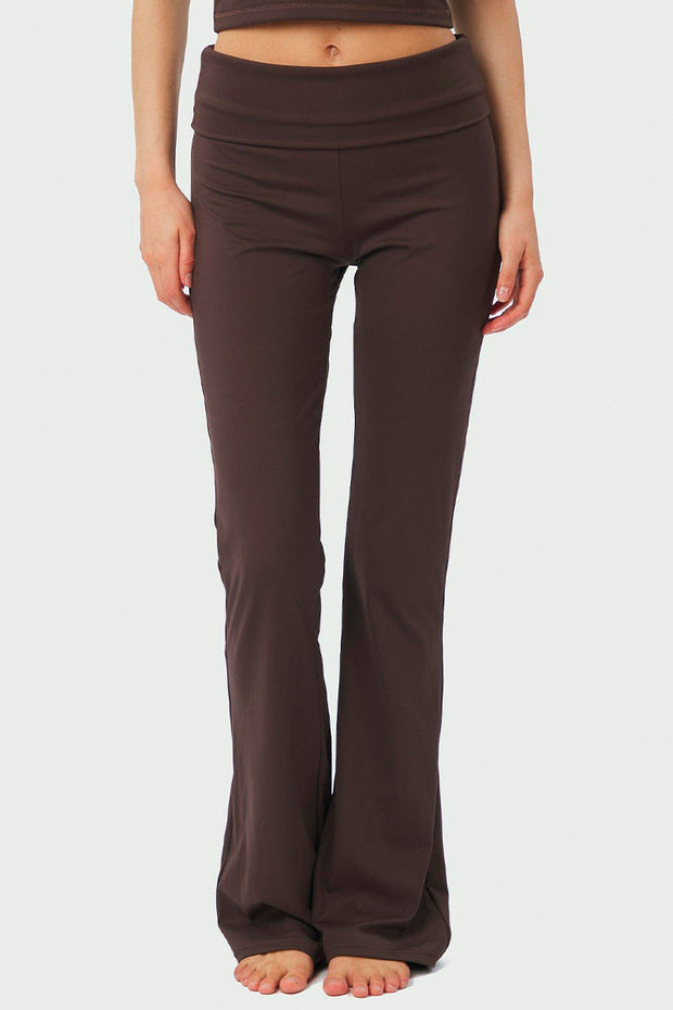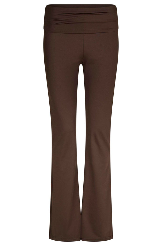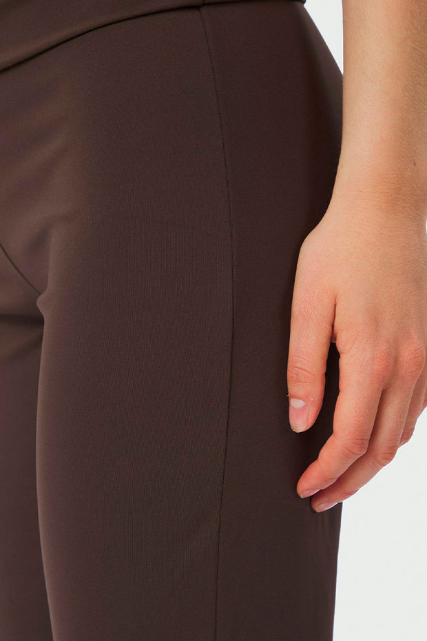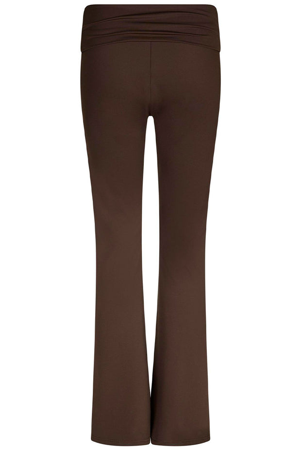 Bequeme Hose mit viel Stretch. Die Hose hat ein hohes Futter, das umgeschlagen werden kann, und ist unten leicht ausgestellt. Das Model ist 176 cm groß und trägt Größe 36.