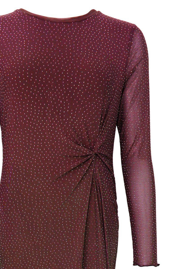 Kjole i mesh med sølvglimmer. Rund hals og slids i sidesømmen. Mål S/M: ½. Brystmål: 46 cm. Længde: 124 cm.