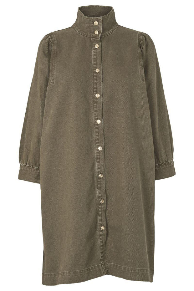Filucca Dress i en skøn denim. Kjole har et enkel og klassisk snit med en fin detalje i form at det påsyet ærme med et lille puf ved skulderen. Kjolen har skjortekrave, 3/4 lange ærmer og er gennemknappet med otte fine guldknapper.