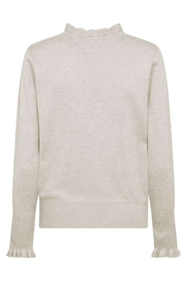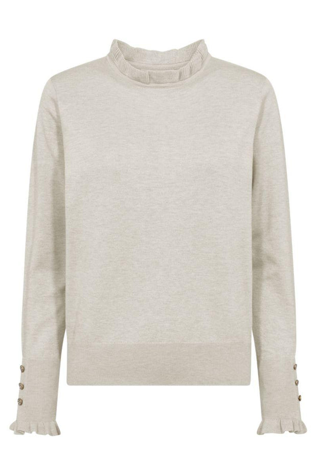 Pullover fra Freequent i en blød, finstrikket kvalitet. Pulloveren er enkel i modellen med ribkanter, en elegant, løs pasform, dekorative knapper med små similisten samt flæser i halsudskæringen og de lange ærmer.