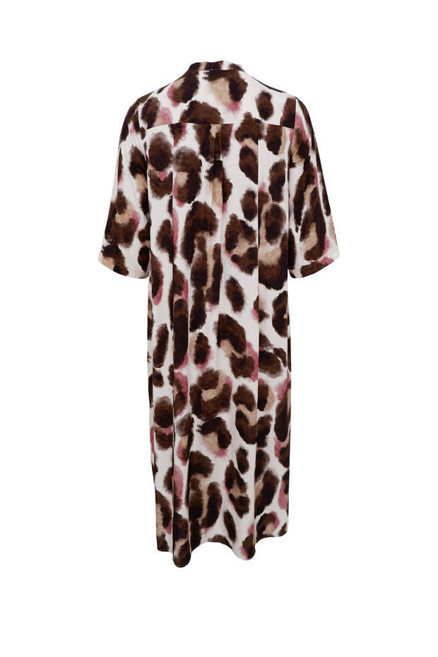 Printet skjortekjole i et smukt print. Med slidser og lommer. Mål S/M: ½ Bryst: 55 cm. Længde: 126 cm.