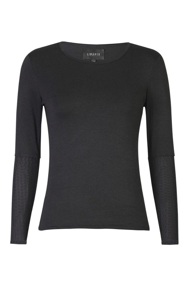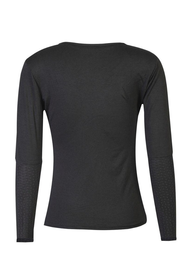 Isa Ls Lace Sleeve Blouse | Black Wavy Lines | Mesh bluse fra Liberté