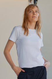 Lulu Classic U Tee er en basis t-shirt i 100% økologisk bomuld. Denne t-shirt har en normal pasform, korte ærmer og en rund halsudskæring. Den er et musthave og du kan bruge den under en vest eller med en blazer.