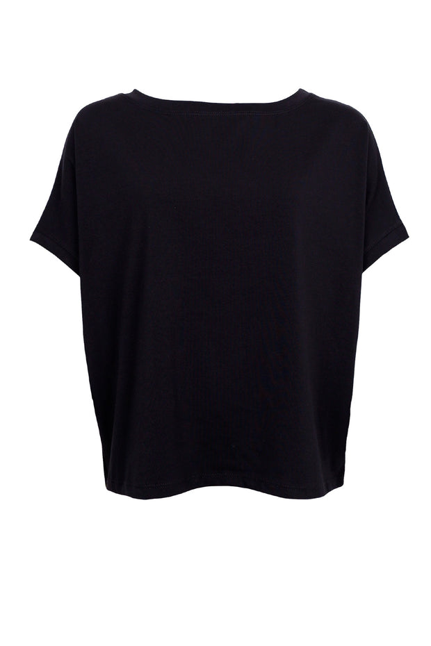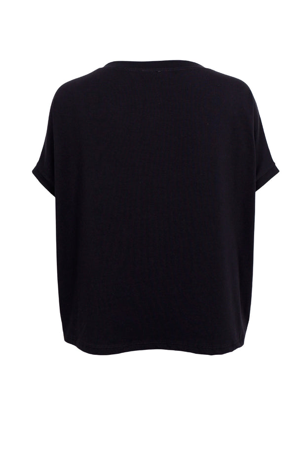 Løs bluse med korte ærmer. Mål S/M: Brystvidde: 68 cm. Længde: 62 cm. Materiale: 90% bomuld, 90% elastan