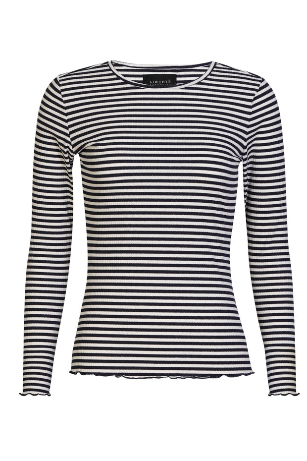 Natalia Ls Round Neck Blouse | Navy Creme Gold Stripe | Bluse fra Liberté